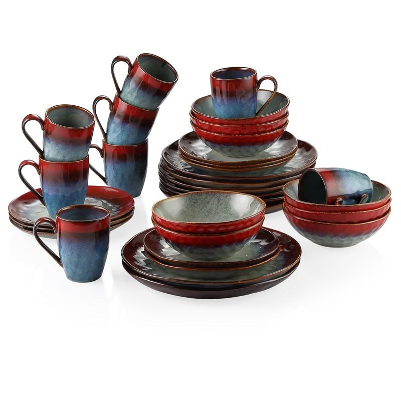 Red Stoneware Ceramic Dinnerware Set for 4 8 12 SKU 70018