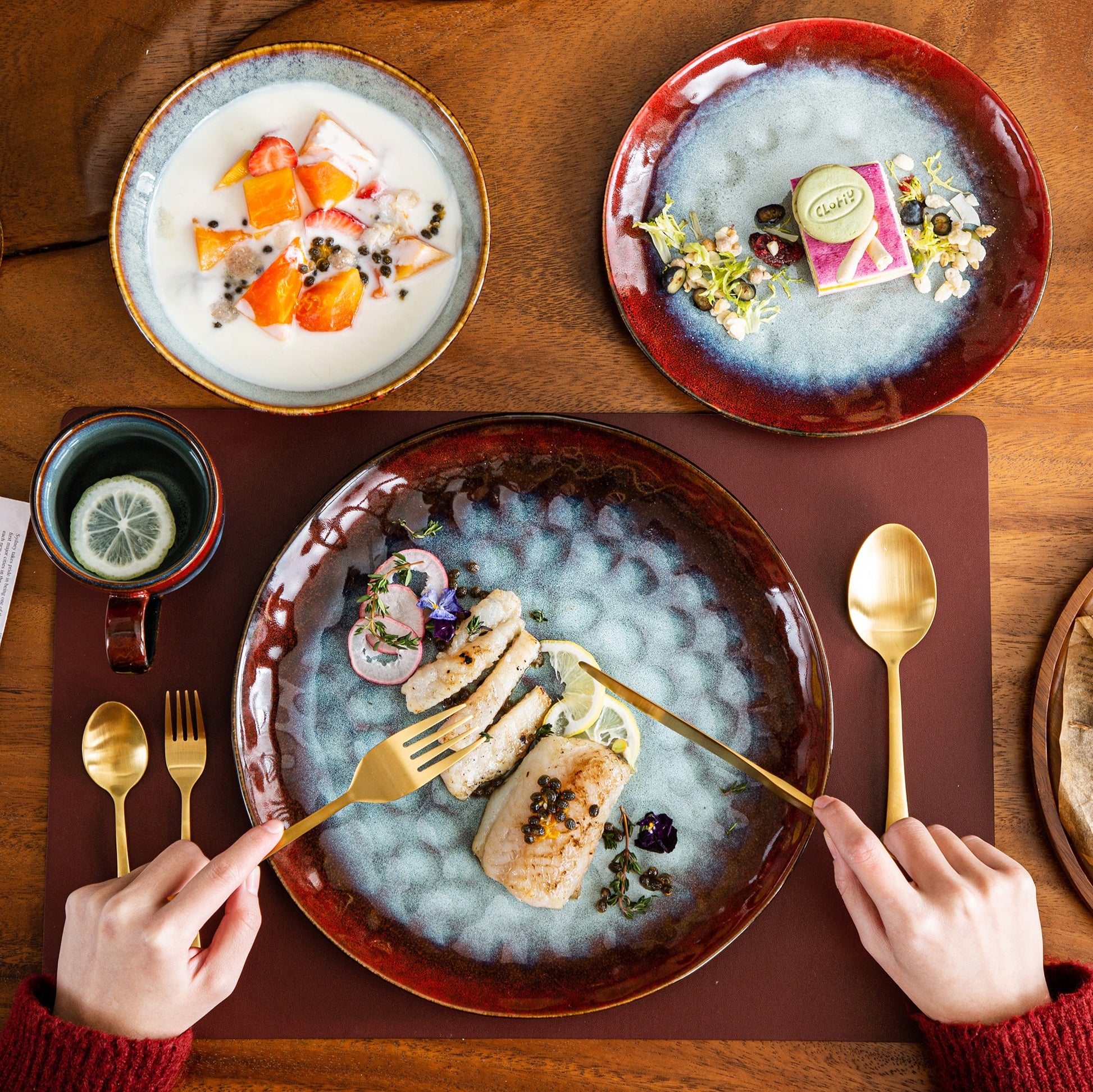 This red stoneware dinnerware set features beautiful patterns and a sophisticated design that will be sure to enhance your dining experience.