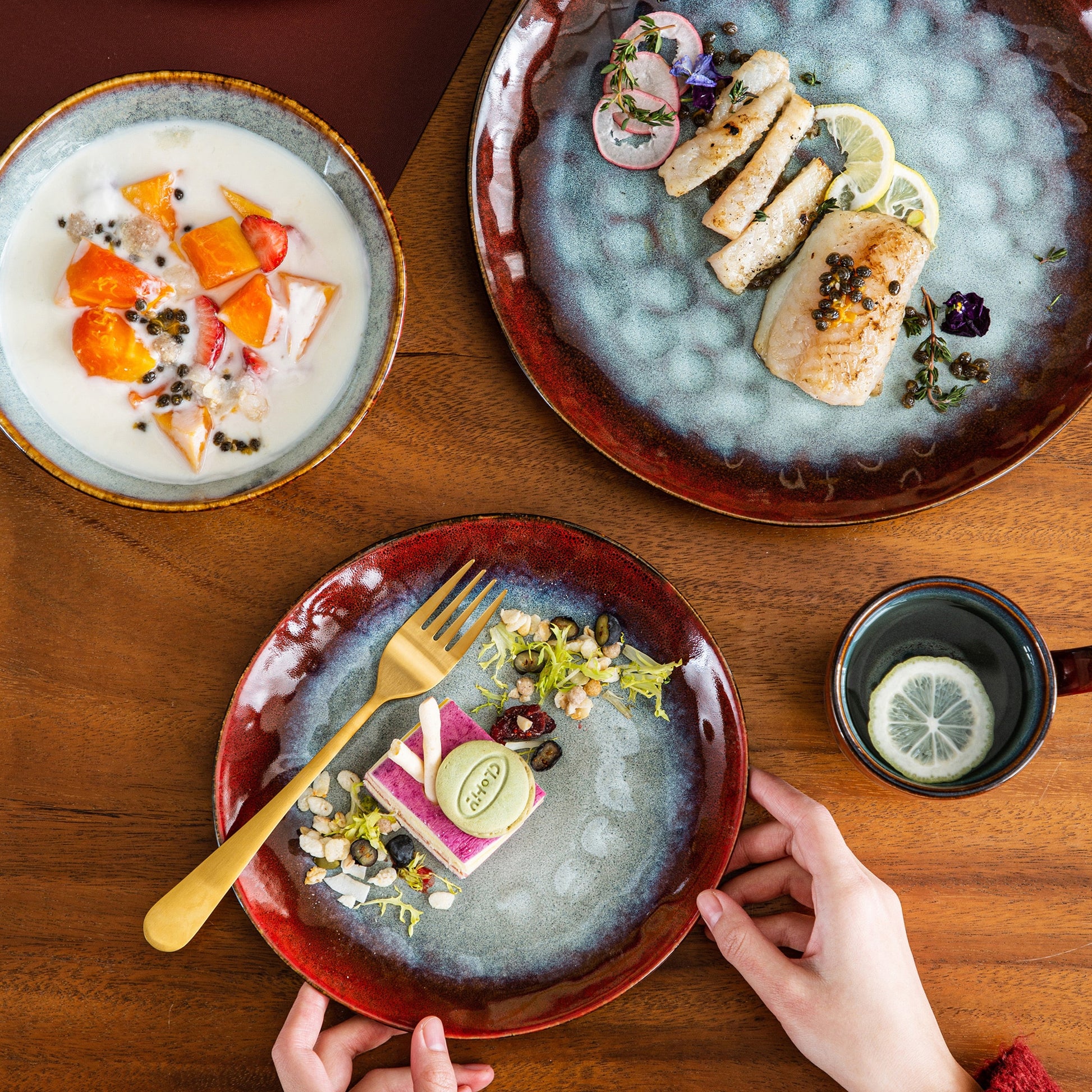 • Dessert plate size: 8 inches (21 x 21 x 2.5 cm)