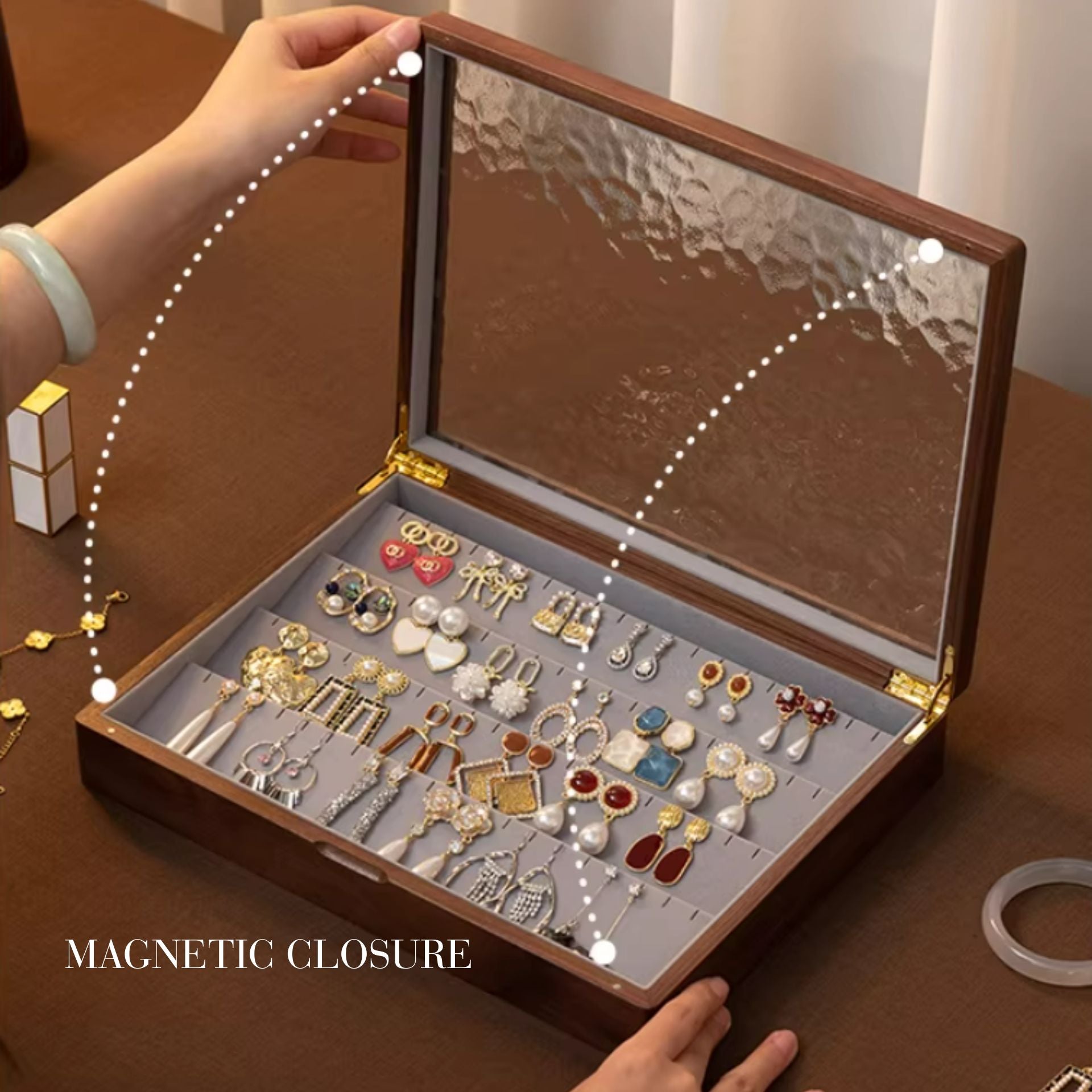• Ample Storage for Earrings: Crafted from solid walnut wood, this jewelry box offers generous space to organize and store your earrings securely, keeping them tangle-free and accessible.